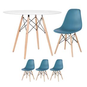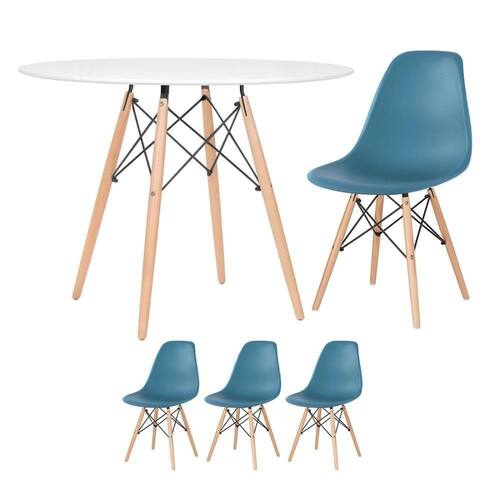 Mesa Redonda Eames 100cm Branco + 3 Cadeiras Turquesa - Azul Turquesa