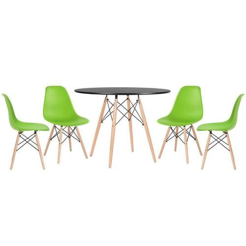 Mesa Redonda Eames 100cm Preto + 4 Cadeiras Verde Claro