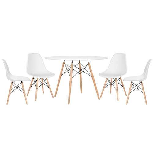 • 1 - Mesa redonda Eames 120 cm 4 - Cadeiras Eiffel DSW
