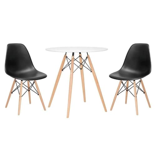 Conjunto de Mesa de Jantar Eames Eiffel Redonda 70cm com 2 Cadeiras Design Moderno e Sofisticado
