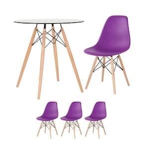 Mesa Redonda Eames Com Tampo De Vidro 70 Cm + 3 Cadeiras Eiffel Dsw Roxo
