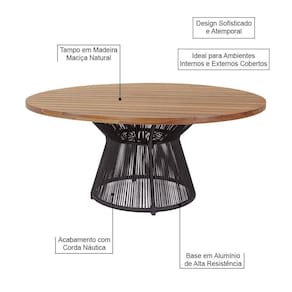 AS IMAGENS SÃO MERAMENTE ILUSTRATIVAS E PODEM SOFRER VARIAÇÕES DE COR E PEQUENOS DETALHES DE ACORDO COM O SEU MONITOR, ILUMINAÇÃO DO AMBIENTE E ATÉ MESMO A SUA PERCEPÇÃO Redonda Elemento em Madeira MaciÃa com Base em Corda NÃutica Preta para Ãrea Gourmet 1,80m