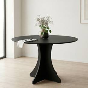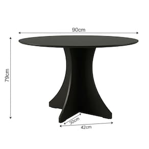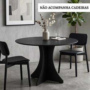 • Modelo: Elisa Base X • Cor: Preto • Altura: 79 cm • Diâmetro: 90 cm • Material: MDF • Tipo: Mesa de jantar