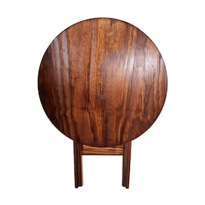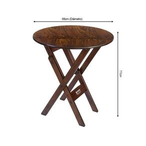 Características Tipo: Conjunto Mesa e Cadeiras Modelo: Redonda Dobrável Cor: Imbuia Estrutura em madeira resistente Acabamento natural e visual rústico Uso em ambientes internos ou externos cobertos