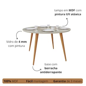 Diferenciais Design sofisticado: combina pés palito retrô com um tampo de vidro elegante. Versatilidade: combina com diferentes estilos de decoração, do clássico ao moderno. Compacta e funcional: perfeita para espaços menores, sem comprometer o conforto. Durabilidade e resistência: estrutura em MDF de qualidade e vidro fácil de limpar. Fácil manutenção: o tampo de vidro é prático para limpeza no dia a dia.