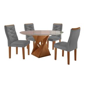 Sim, especialmente as redondas ou mesa quadrada. Medida da Mesa (A x L x P): 79cmx100cmx100cm Peso da Mesa: 38 kg Mesa suporta até: 30 kg Acabamento da Cadeira/Banco: Pintura Acabamento da Mesa: Pintura UV Almofada do assento: Fixa Ambiente Principal: Sala de Jantar Cadeira/Banco estofada: Encosto e Assento Estofados Cadeira/Banco Estofada: Encosto e Assento Estofados Cadeira/Banco suporta até: 120 kg Cadeira/Banco Suporta Até: 120.0000 codigo_ean: 7900288340894 Complexidade da Montagem: Média: pode ser montado por mais de uma pessoa e/ou necessite de maior conhecimento para montagem Cor: Cinza/Cinamomo Cor das Cadeiras: Cinza Cor do Produto: Cinza/Cinamomo Cor do Tampo: Bege Cor Secundária: Marrom De Canto (Canto Alemão): Não Enchimento do Assento: Espuma D-23 Enchimento do Encosto: Espuma D-20 Escala de Brilho: Fosco Espessura do Tampo: 29 mm Estrutura do Assento: MDF Formato do Tampo: Redondo Informações Complementares: Acabamento da cadeira em Pintura e dos pés em Melamínico Itens Inclusos: 1 Mesa, 4 Cadeiras, Kit Ferragens e Manual de Montagem Linha ou Coleção: Barcelona Manual de Montagem e Instalação: https://product-hub-prd.madeiramadeira.com.br/834716942/documents/455f51a5-67cf-4e09-b35e-cfc1cbeef52c5652b61eFIXACAO20DO20VIDRO.pdf Marca: Yescasa Material da Base da Mesa: MDF Material da Estrutura da Cadeira: MDF Material do Tampo: Vidro/MDF Material Principal: MDF Material Principal das Cadeiras/Bancos: MDF Medida da Base (A x L x P): 76,5cmx45cmx45cm Medida da Cadeira/Banco (A x L x P): 97,5cmx44cmx59cm Medida do Tampo (L x C x E): 100cmx100cmx2,9cm Mesa Dobrável: Não Mesa Extensível: Não Necessita Montagem: Sim Origem do Produto: Nacional Peso da Cadeira/Banco: 8 kg Possui Apoio para Braços: Não Possui Apoio Para os Pés: Não Possui Suporte Giratório: Não Possui Vidro: Sim Quantidade de Cadeiras: 4 Quantidade de Lugares: 04 Recomendações de Uso, Manutenção e Limpeza: Limpeza com pano macio e levemente umedecido. Não utilizar solventes a base e de inflamáveis. Não utilizar produtos abrasivos. Revestimento da Cadeira/Banco: Veludo Sistema de Montagem: Parafusos Tipo de Assento: Fixo Tipo de Encosto: Fixo