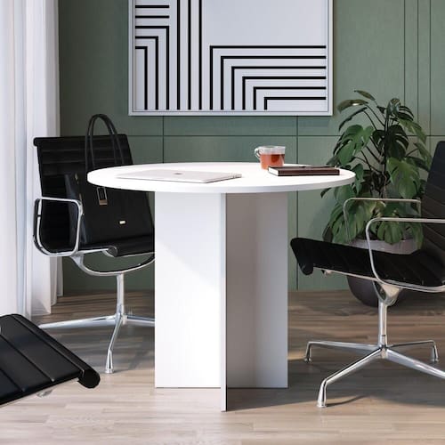 Mesa redonda da Linha Home&Officie produzida pela M.com, há mais de 30 anos produzindo móveis com qualidade. Esta linha chega ao mercado atendendo às necessidades do corporativo e residencial e até para os menores espaços. Fabricado com madeira ecologicamente correta de MDP 15 mm e MDP 18 mm, proporcionando leveza e eficiência para seu ambiente.