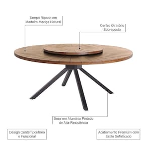 AS IMAGENS SÃO MERAMENTE ILUSTRATIVAS E PODEM SOFRER VARIAÇÕES DE COR E PEQUENOS DETALHES DE ACORDO COM O SEU MONITOR, ILUMINAÇÃO DO AMBIENTE E ATÉ MESMO A SUA PERCEPÇÃO VISUAL.Mesa Redonda Tetra Tampo GiratÃrio em Madeira MaciÃa com Base de Metal Preto para Ãrea Gourmet 1,80