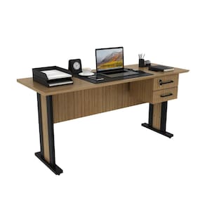 Mesa Reta de Escritório 160cm com 2 Gavetas e Chave Office Amêndoa/Preto - Marrom
