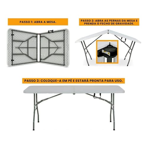 A Mesa Dobrável Evolux 180cm Branca é a solução definitiva para quem busca uma mesa espaçosa, versátil e fácil de transportar. Com um tampo amplo de 1,80 metro, ela oferece o dobro de espaço em comparação com mesas menores, sendo perfeita para acomodar confortavelmente até 8 pessoas. Sua estrutura robusta em aço e o tampo em polietileno de alta densidade (HDPE) garantem alta resistência e durabilidade. O design inteligente, com um sistema de pés dobráveis e uma alça de transporte, permite que a mesa se transforme em uma maleta, facilitando o transporte e o armazenamento em qualquer lugar. É a escolha ideal para eventos, festas, churrascos, feiras ou para uso diário em casa, no jardim ou em acampamentos.