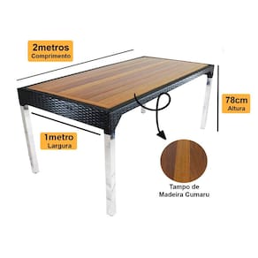 Características: Peças produzidas em alumínio polido e revestidas em fibra sintética com proteção UV. Nossos produtos são artesanais e podem ocorrer variações na medida de até 2cm. As cores dos produtos podem variar de acordo com o ambiente e com a iluminação em que as fotos foram tiradas. Tampo de Madeira Cumaru