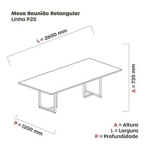 Mesa de Reunião com tampo de 25mm de espessura tipo retangular com medida de 260x90cm. A Mesa para Escritório consegue combinar facilmente com outras mobílias sem atrapalhar a decoração. Ela oferece espaço para você e deixa o seu local de trabalho muito mais organizado e elegante. É ideal para desempenhar tarefas diárias de trabalho, acomoda inúmeros objetos que você desejar produzida em estrutura MDP que a deixa mais resistente e mais segura para você.