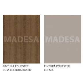 - O Tampo na cor Crema e o acabamento em amadeirado Rustic é versátil e combina com madeiras claras ou escuras e praticamente todas as cores.