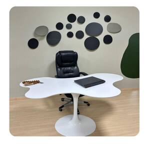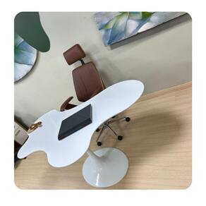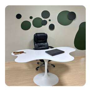 Descrição do Design: Tampo: Branco brilhante, com um desenho orgânico único, sem linhas retas, proporcionando um visual fluido e natural. Suas bordas arredondadas reforçam a sensação de suavidade e movimento, criando uma peça moderna e diferenciada. Base: Estrutura central em pedestal, também branca, garantindo estabilidade e um design minimalista que harmoniza com o formato do tampo. Estilo: Moderno e sofisticado, ideal para ambientes de escritório ou home office de alto padrão. Destaque: A combinação entre a base icônica e o tampo orgânico resulta em uma mesa funcional e escultural, tornando-se um ponto de destaque no ambiente.