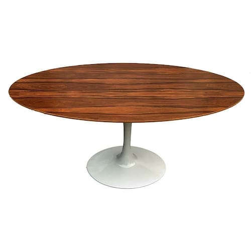 A Mesa Saarinen Oval Pau Ferro 160x90cm - Base Branca foi criada em 1957 por Eero Saarinen, a Mesa Tulip Saarinen resolveu o mundo feio, confuso e incomum embaixo de mesas. A Tulipa, é uma realização definidora de design moderno e uma adição intemporal para sua casa - um verdadeiro clássico.