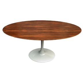 A Mesa Saarinen Oval Pau Ferro 180x100cm - Base Branca foi criada em 1957 por Eero Saarinen, a Mesa Tulip Saarinen resolveu o "mundo feio, confuso e incomum" embaixo de mesas. A Tulipa, é uma realização definidora de design moderno e uma adição intemporal para sua casa - um verdadeiro clássico.