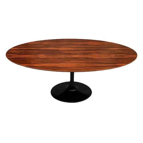 A Mesa Saarinen Oval Pau Ferro 235x122cm - Base Branca foi criada em 1957 por Eero Saarinen, a Mesa Tulip Saarinen resolveu o mundo feio, confuso e incomum embaixo de mesas. A Tulipa, é uma realização definidora de design moderno e uma adição intemporal para sua casa - um verdadeiro clássico.