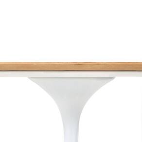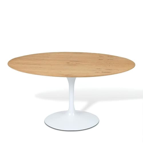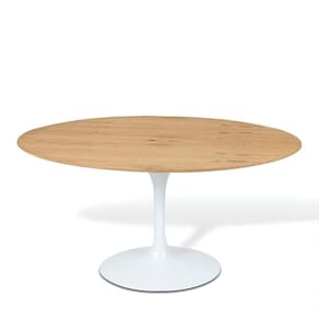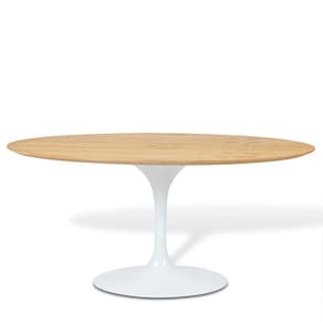 Mesa Saarinen Oval criada pelo Eero Saarinen. Foi projetada em 1956 como parte da icônica Coleção Pedestal, Saarinen procurou resolver a bagunça em casas e escritórios americanos criados por pernas de cadeiras e mesas convencionais, deixando assim um ambiente elegante e sofisticado.