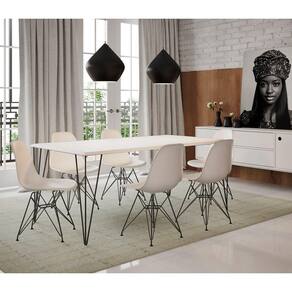 Mesa Sala De Jantar Industrial Clips Branca 135x75 Com 6 Cadeiras Eiffel Brancas De Ferro Preto