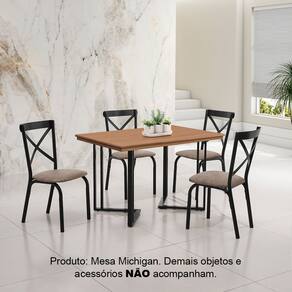 Apresentamos a Mesa de Jantar Industrial Michigan, uma peça que combina robustez e estilo para transformar sua sala de jantar em um ambiente moderno e acolhedor. Com um design que mescla o rústico da madeira maciça com a modernidade dos pés em aço preto, esta mesa é ideal para quem busca sofisticação e durabilidade. Características ? Tipo: Mesa de Jantar ? Modelo: Industrial Michigan ? Cor: Tampo em Castanho; Pés em Preto