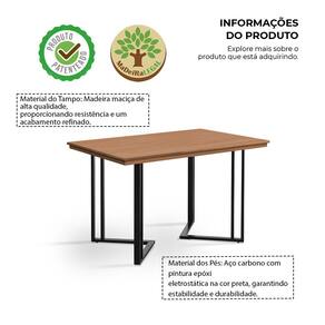 Detalhes do Produto ? Material do Tampo: Madeira maciça de alta qualidade, proporcionando resistência e um acabamento refinado. ? Material dos Pés: Aço carbono com pintura epóxi eletrostática na cor preta, garantindo estabilidade e durabilidade. ? Design: Estilo industrial que harmoniza com diversos tipos de decoração, desde ambientes mais rústicos até os mais contemporâneos.