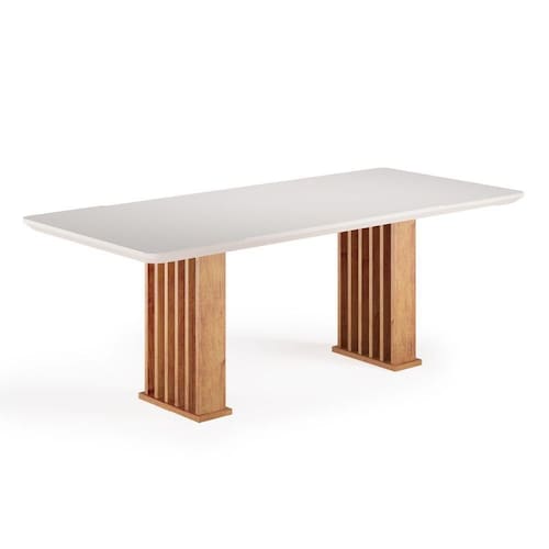 A Mesa Mond 2m é a escolha perfeita para quem deseja transformar a cozinha ou sala de jantar em um espaço cheio de charme, elegância e funcionalidade. Com um design que une modernidade e sofisticação, ela se destaca pelo tampo de vidro temperado, que além de garantir resistência e facilidade na limpeza, conta com cantos suavemente arredondados, proporcionando mais no dia a dia. Sua base dupla ripada, adiciona um toque diferenciado e requintado à peça, criando um efeito visual marcante que valoriza qualquer ambiente. Ideal para quem busca uma mesa que combine beleza, praticidade e durabilidade.