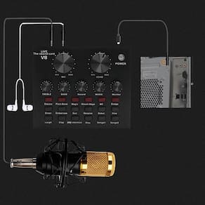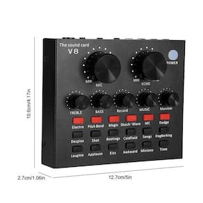 Mesa de Som V8 Placa de Som Áudio USB Microfone Smart Multipurpose Computador Smarthphone Conjunto Interface Externa Esta placa de som multifuncional tem 12 tipos de sons eletrônicos e 12 tipos de efeitos sonoros, que suporta o uso móvel duplo. Também é compatível com telefones IOS e Android. CARACTERÍSTICAS: A placa de som é feita de material de alumínio de alta qualidade com um design fino e leve. Compatível com smartphones, PCs e laptops. Função universal, suporta várias funções, tais como cantar, viver, gravar, música, etc É compatível com todos os principais programas de transmissão . Suporta uso móvel duplo. 12 efeitos sonoros: alegria, vergonha, atirar, desprezar, estréia, beijo, riso, palmas, preste atenção, beijo, músicas 1, músicas 2. - Knobs de controle: Com botões de controle para volume do microfone, volume de eco, agudos, graves, volume de gravação, volume da música e ajuste do volume do monitor. Ele pode ser para gravação , KTV em casa, bate-papo de voz e muito mais. Nota: Devido à tela diferente e ao efeito de luz, a cor real do item pode ser ligeiramente diferente da cor mostrada nas imagens. - Lista de pacotes: Tipo 1: 1 Placa de som 1 Cabo de carregamento USB 2 Cabos de áudio 1 Manual em inglês Homologação Anatel: 080281811799