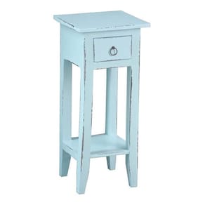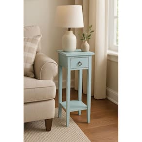 Sofá perfeito ou toque de cabeceira, esta mesa final chique de chalé é um palco estiloso para carregar um telefone ou um livro favorito. Esta pequena mesa lateral de duas camadas e desgastada adicionará brilho a qualquer espaço minúsculo que você tenha de sobra. Guarde os itens essenciais na prática gaveta. A prateleira é ideal para toalhas de mão, uma cesta com produtos de higiene pessoal ou um difusor de óleo essencial!