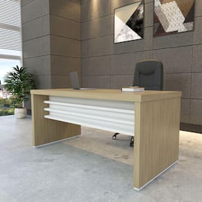 Organize seu escritório para maior produtividade com a Mesa Tamburato 1600, projetada para conciliar elegância, requinte e conforto. Longarinas horizontais garantem um design contemporâneo e versátil, permitindo com que a mesa possa ser usada em diversos ambientes com estilos diferentes, inclusive em home office, sempre dando um toque especial. O espaçoso tampo garante muito conforto e comodidade, já que você poderá trabalhar ou estudar com amplo espaço para suas coisas. As laterais e o tampo são de Tamburato, peças de 50mm de espessura, que garantem um produto robusto, forte e sofisticado. O revestimento é feito em BP e as bordas são de PVC, proporcionando resistência a impactos, atrito e umidade, certificando uma maior durabilidade ao móvel.