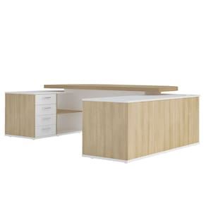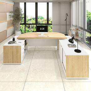 "Seu escritório totalmente sofisticado e funcional, com esta encantadora mesa em “U”! Realmente grande e espaçosa, ela é muito imponente e vai impressionar a todos com seu design moderno e autêntico, garantido pelas belas curvas e somado ao tampo sobreposto e muito robusto de Tamburato de 50mm de espessura! Pensando na sua praticidade e conforto, esta linda mesa para escritório é completa, pois oferece muito espaço para trabalhar e armazenar materiais, em 4 gavetas, 2 portas de correr e muitas prateleiras, além de espaço ideal para CPU e caixa de tomada. Além disso, a leve curvatura na parte interna do tampo a tornam ainda mais ergonômica. Materiais de alta qualidade garantem um móvel muito resistente, durável e com acabamento perfeito!"