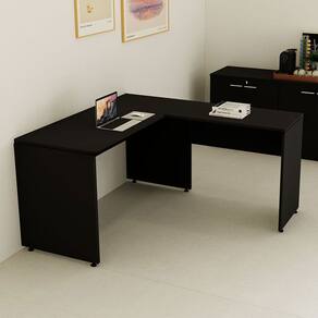 Mesa Tampo Auxiliar 90cm X 46cm para Escritório com Pé Lateral em Painel Corporate Preto