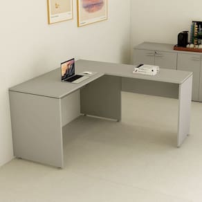 Mesa Tampo Auxiliar 90cm X 74cm para Escritório com Pé Lateral em Painel Corporate Cinza