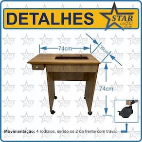 Itens inclusos: - mesalete completo o produto vai desmontado ; - manual de montagem passo a passo detalhado; - kit de rodinhas com trava; - porta cone de linha exclusivo - star costura; - mini catálogo - star costura - com cupom de desconto para próxima compra. Marca: Star Costura Ean: 7793671586494