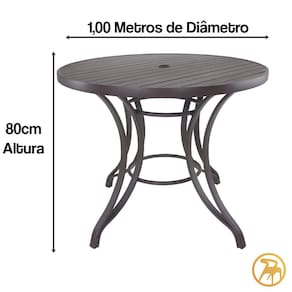 Mesa Tampo Ripado Em Alumínio 1,00m Diâmetro para Área, Piscina e Jardim - Trama OriginalIdeal para Ambientes Como: Varandas, Edículas, Área de Lazer, Salas de Estar, Sala de Jogos, Churrasqueiras, Sala de Filme, Recepção, Sala de Espera Entre Outros.Características:- Peças Produzidas Em Alumínio Polido e Revestidas Em Fibra Sintética Com Proteção Uv.- Nossos Produtos São Artesanais e Podem Ocorrer Variações na Medida de Até 2cm.- as Cores dos Produtos Podem Variar de Acordo Com o Ambiente e Com a Iluminação Em Que as Fotos Foram Tiradas.Itens Inclusos:01 Mesa Ascoli Com Tampo RipadoEspecificações Técnicas:Mesa Ascoli:- Altura: 80cm- Diâmetro: 100cm- Tampo Ripado Em Alumínio- Alumínio Com Pintura EletrostáticaEstamos Trabalhando Com Prazo Entorno de 15 a 20 Dias Úteis para Entrega (trabalhamos Com Transportadora, Essa é Uma Previsão, Podendo Ser Entregue Antes ou Até Um Pouco Depois).Garantia do Fornecedor: 12 MesesDúvidas Frequentes:- Quais as Cores Disponíveis?Temos as Opções de Pintura nas Cores: Preto, Marrom, Cinza- Como Escolher a Cor do Produto?Após a Confirmação do Pagamento Ficará Disponível Um Campo de Mensagens Entre o Vendedor e o Comprador, por Lá Será Acertado Todos os Detalhes Referentes as Cores do Produto Escolhido Antes de Ser Encaminhado para a Produção.- Os Produtos Podem Ficar Expostos Ao Tempo?Sim, a Estrutura Pode Ser Molhada e Utilizada Em Áreas Abertas, Expostas Ao Sol e Chuva. a Fibra Sintética Possui Filtro Uv, Com Isso o Produto Pode Ficar Tranquilamente Exposto Ao Tempo Sem Que o Mesmo Danifique-o.