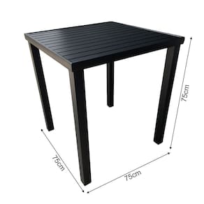 AS IMAGENS SÃO MERAMENTE ILUSTRATIVAS E PODEM SOFRER VARIAÇÕES DE COR E PEQUENOS DETALHES DE ACORDO COM O SEU MONITOR, ILUMINAÇÃO DO AMBIENTE E ATÉ MESMO A SUA PERCEPÇÃO VISUAL.Mesa Tampo Ripado Quadrada 0.75x0.75m AlumÃnio Preta