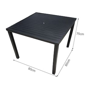 AS IMAGENS SÃO MERAMENTE ILUSTRATIVAS E PODEM SOFRER VARIAÇÕES DE COR E PEQUENOS DETALHES DE ACORDO COM O SEU MONITOR, ILUMINAÇÃO DO AMBIENTE E ATÉ MESMO A SUA PERCEPÇÃO VISUAL.Mesa Tampo Ripado Quadrada 0.80x0.80m AlumÃnio Preta