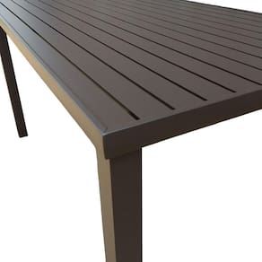 AS IMAGENS SÃO MERAMENTE ILUSTRATIVAS E PODEM SOFRER VARIAÇÕES DE COR E PEQUENOS DETALHES DE ACORDO COM O SEU MONITOR, ILUMINAÇÃO DO AMBIENTE E ATÉ MESMO A SUA PERCEPÇÃO VISUAL.Mesa Tampo Ripado Retangular 1.50x0.80m AlumÃnio Marrom