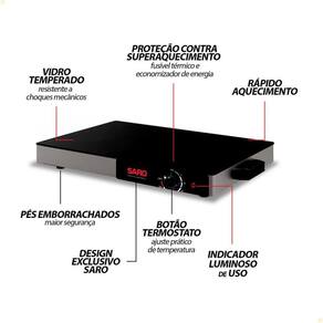 - A Mesa Térmica Elétrica Saro MT22 com vidro temperado combina praticidade, segurança e sofisticação para manter seus alimentos sempre na temperatura ideal.