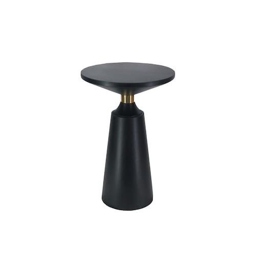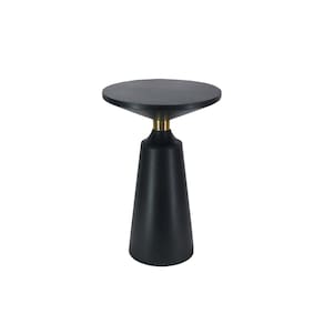 Mesa lateral Urban Port Fawn de 20 polegadas, tampo redondo de madeira de manga preta com base de pedestal, suporte de latão brilhante