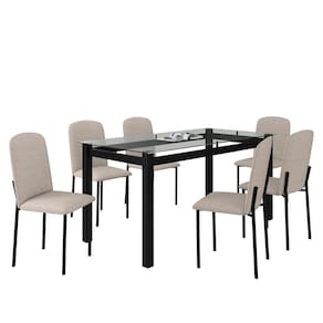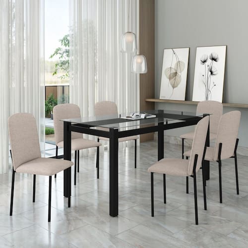 Sua estrutura é de tubo em aço, com pintura Epóxi de alta resistência, tampo da mesa de Vidro Temperado, o que proporciona um design moderno ao produto, cadeiras com assento confortável e encosto anatômico proporcionando conforto. Acompanha cadeira. Medida da Mesa (A x L x P): 76,5cm x 160cm x 80cm Peso da Mesa: 30,78 kg Mesa suporta até: 40 kg Acabamento da Cadeira/Banco: Pintura Epóxi Acabamento da Mesa: Pintura Epóxi Acompanha Manual de Instalação: Sim Almofada do assento: Fixa Ambiente Principal: Sala de Jantar Cadeira/Banco Estofada: Encosto e Assento Estofados Cadeira/Banco estofada: Encosto e Assento Estofados Cadeira/Banco suporta até: 120 kg Cadeira/Banco Suporta Até: 120.0000 codigo_ean: 7898644079321 Complexidade da Montagem: Média: pode ser montado por mais de uma pessoa e/ou necessite de maior conhecimento para montagem Cor: Preto / Bege Cor da Base: Preto Cor das Cadeiras: Preto Cor do Produto: Preto / Bege Cor do Tampo: Transparente Cor Secundária: Cinza De Canto (Canto Alemão): Não Design da Base: Retangular Enchimento do Assento: Espuma D-18 Escala de Brilho: Semi-Fosco Espessura do Tampo: 8 mm Espessura do Vidro: 8 mm Estrutura do Assento: Aço Formato do Tampo: Retangular Itens Inclusos: 1 Mesa, 6 Cadeiras, Kit Ferragens e Manual de Montagem Linha ou Coleção: Tokio / Classic Manual de Montagem e Instalação: https://product-hub-prd.madeiramadeira.com.br/518430502/documents/1ed8a437-0cc0-4791-a8cf-006e0c55d9573137559531017552016391642.pdf Marca: Art Panta Material da Base da Mesa: Aço Material da Estrutura da Cadeira: Aço Material do Tampo: Vidro Material Principal: Aço Medida da Cadeira/Banco (A x L x P): 86cm x 42cm x 52cm Medida do Tampo (L x C x E): 80cm x 160cm x 8mm Mesa Dobrável: Não Mesa Extensível: Não Montagem Flex: NAO Necessita Montagem: Sim Origem do Produto: Nacional Peso da Cadeira/Banco: 9,69 kg Possui Apoio para Braços: Não Possui Apoio Para os Pés: Não Possui Prateleiras: Não Possui Suporte Giratório: Não Possui Vidro: Não Quantidade de Cadeiras: 6 Quantidade de Lugares: 06 Recomendações de Uso, Manutenção e Limpeza: Pano levemente umedecido com água, seguido de pano seco, não utilizar produtos químicos ou abrasivos. Revestimento da Cadeira/Banco: Linho Sistema de Montagem: Parafusos Vidro Temperado: Sim