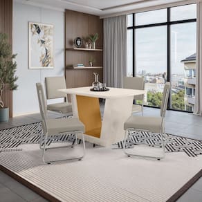 Que tal deixar o seu lar repleto de charme e bom gosto? O Conjunto Sala de Jantar com a Mesa Viena e cadeiras Monaco é perfeito, ideal para deixar sua casa mais convidativa e melhor decorada. Tenha em sua casa um produto de qualidade e beleza. Acompanha cadeira. Medida da Mesa (A x L x P): 77cm x 120cm x 90cm Peso da Mesa: 35,72 kg Mesa suporta até: 40 kg Acabamento da Cadeira/Banco: Cromado Acabamento da Mesa: Pintura UV Acompanha Manual de Instalação: Sim Almofada do assento: Fixa Ambiente Principal: Sala de Jantar Cadeira/Banco Estofada: Encosto e Assento Estofados Cadeira/Banco estofada: Encosto e Assento Estofados Cadeira/Banco Suporta Até: 120.0000 Cadeira/Banco suporta até: 120 kg codigo_ean: 7900288236265 Complexidade da Montagem: Média: pode ser montado por mais de uma pessoa e/ou necessite de maior conhecimento para montagem Cor: Off White/Marrom Cor do Produto: Off White/Marrom Cor Secundária: Marrom De Canto (Canto Alemão): Não Enchimento do Assento: Espuma D-23 Escala de Brilho: Semi-Fosco Espessura do Tampo: 33 mm Estrutura do Assento: Aço Formato do Tampo: Retangular Itens Inclusos: 1 Mesa, 4 Cadeiras, Kit Ferragens e Manual de Montagem Linha ou Coleção: Viena/Monaco Manual de Montagem e Instalação: https://product-hub-prd.madeiramadeira.com.br/888520154/documents/99deea98-79a5-4c02-99d6-6344e10b2f0c3162840531017562362755784.pdf Marca: Art Panta Material da Base da Mesa: MDF/MDP Material da Estrutura da Cadeira: Aço Material do Tampo: MDF/MDP/Vidro Medida da Cadeira/Banco (A x L x P): 89cm x 46cm x 61cm Medida do Tampo (L x C x E): 90cm x 120cm x 33mm Mesa Dobrável: Não Mesa Extensível: Não Montagem Flex: NAO Necessita Montagem: Sim Origem do Produto: Nacional Peso da Cadeira/Banco: 8,1 kg Possui Apoio para Braços: Não Possui Apoio Para os Pés: Não Possui Prateleiras: Não Possui Suporte Giratório: Não Possui Vidro: Sim Quantidade de Cadeiras: 4 Quantidade de Lugares: 04 Recomendações de Uso, Manutenção e Limpeza: Pano levemente umedecido com água, seguido de pano seco, não utilizar produtos químicos ou abrasivos. Revestimento da Cadeira/Banco: Courino Sistema de Montagem: PARAFUSOS Tipo de Assento: Fixo Tipo de Encosto: Fixo