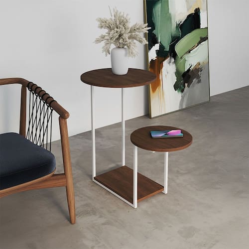 OBS: Produto: Mesa Lateral Cibele com tampos redondos; outros objetos que estão presentes na imagem ambientada não acompanham o produto.