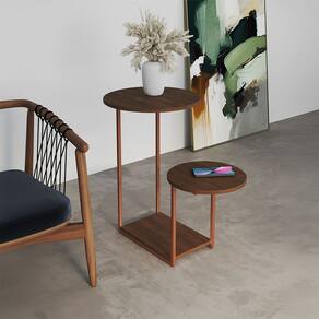 OBS: Produto: Mesa Lateral Cibele com tampos redondos; outros objetos que estão presentes na imagem ambientada não acompanham o produto.