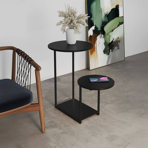 Características: Modelo: Mesa Lateral Cibele Material da Estrutura: Ferro Material do Tampo: MPD Formato: Redondo Cor do tampo: Preto Cor da estrutura: Preto Design moderno e funcional