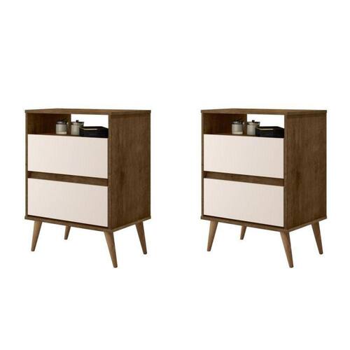 As Mesas de Cabeceira 2 Gavetas Lotus são ideais para compor a decoração do seu ambiente. Seu tamanho compacto se adapta a diversos tamanhos de espaço. Ideal para compor seu dormitório e até escritório possui espaço para objetos que precisam estar à mão, além de objetos decorativos e diversos outros itens. Funcional e lindo, seus pés palito garantem o charme e o requinte que você buscava. Altura do Conjunto: 71 cm Ambiente: null Ambiente Principal: Quarto Cor: Jequitibá/Off White Informação Complementar: 2x Mesa de Cabeceira 2 Gavetas Lotus Jequitibá/Off White Largura: 45 cm Altura: 71 Peso: 11 kg Profundidade: 37 cm Necessita Montagem: Sim