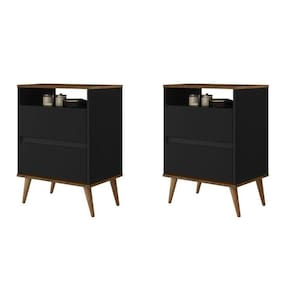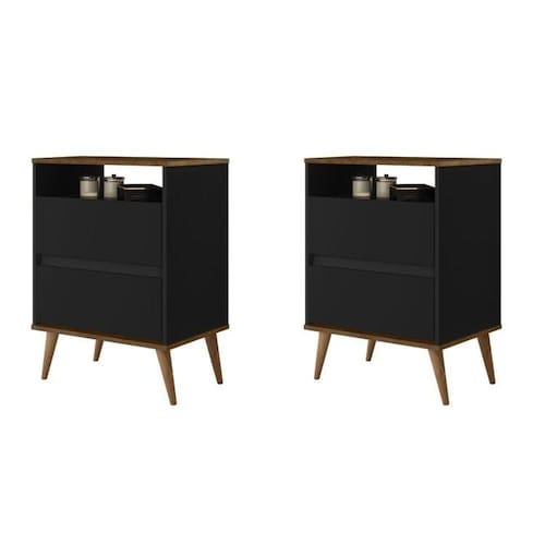 As Mesas de Cabeceira 2 Gavetas Lotus são ideais para compor a decoração do seu ambiente. Seu tamanho compacto se adapta a diversos tamanhos de espaço. Ideal para compor seu dormitório e até escritório possui espaço para objetos que precisam estar à mão, além de objetos decorativos e diversos outros itens. Funcional e lindo, seus pés palito garantem o charme e o requinte que você buscava. Altura do Conjunto: 71 cm Ambiente: null Ambiente Principal: Quarto Cor: Preto/Jequitibá Informação Complementar: 2x Mesa de Cabeceira 2 Gavetas 1 Nicho Lotus Preto/Jequitibá Largura: 45 cm Altura: 71 Peso: 11,88 kg Profundidade: 37 cm Necessita Montagem: Sim
