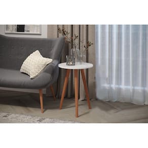 Mesinha Apoiar Copos E Drinks Redonda Branca Pés Palito Mesa lateral redonda com pé palito é o móvel perfeito para o seu lar Totalmente atemporal e sofisticado garantindo uma elegância ao seu ambiente. Utilize na sala de estar dando um toque tradicional com sofisticação, mas se optar por uma decoração minimalista e moderna é simples, a mesa lateral redonda com pé palito ficará incrível no hall de entrada ou no quarto substituindo as tradicionais mesas de cabeceira. Você pode incrementar seu jogo de mesa com plantas, vaso de suculentas, um livro ou até mesmo uma vela aromática. Gostou das ideias Monte seu cantinho e compartilhe conosco sua decoração. DESCRITIVO Tampo em MDF com espessura de 15mmDisponível na cor branco brilhante.Pés de madeiraOs pés são confeccionados em madeira e parafusados, assim tornando a montagem simples e rápida. Disponível na cor branca. Itens presentes na caixa: - Tampo de 44 cm- Altura mesa 59 cm- 3 Pés 59cm- Parafusos- Suporte de nylon- Chave L