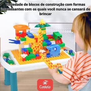 Transforme o momento de brincar em uma experiência criativa e organizada com a Mesa para Blocos de Montar Castela Esse conjunto incrível inclui uma mesa multifuncional, uma cadeira confortável e 81 peças de blocos de montar para inspirar a imaginação e estimular a criatividade das crianças.