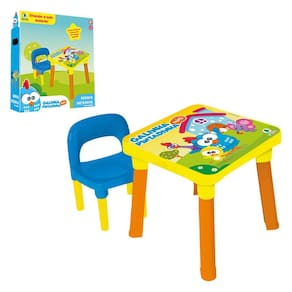 Mini Minha Mesinha C/ Cadeira Galinha Pintadinha A criançada vai adorar a Galinha Pintadinha MINI Minha Mesinha c/ cadeira da Monte Líbano. O material é resistente e seguro, leve e fácil de levar para qualquer lugar. Um brinquedo divertido para realizar atividades escolares, desenhar e pintar. E o melhor de tudo isso, A Galinha Pintadinha Mini é o personagem queridinho da primeira idade! Informações: - Recomendado para crianças maiores de 03 anos - Referência: 0400 - Produto: GP Mini Minha Mesinha c/ cadeira - Medidas Cadeira Aproximadamente: 45x23x32cm - Medidas Mesa Aproximadamente: 43x50x50cm Contém: - 1 Mesinha - 1 Cadeirinha