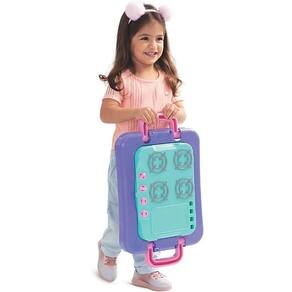 - Ela conta com botões que simulam o sons de botões de fogões normais (tec-tec); tem 4 bocas de fogão, espaço para corte de alimentos, espaço para utensílios e seu tampo abre.